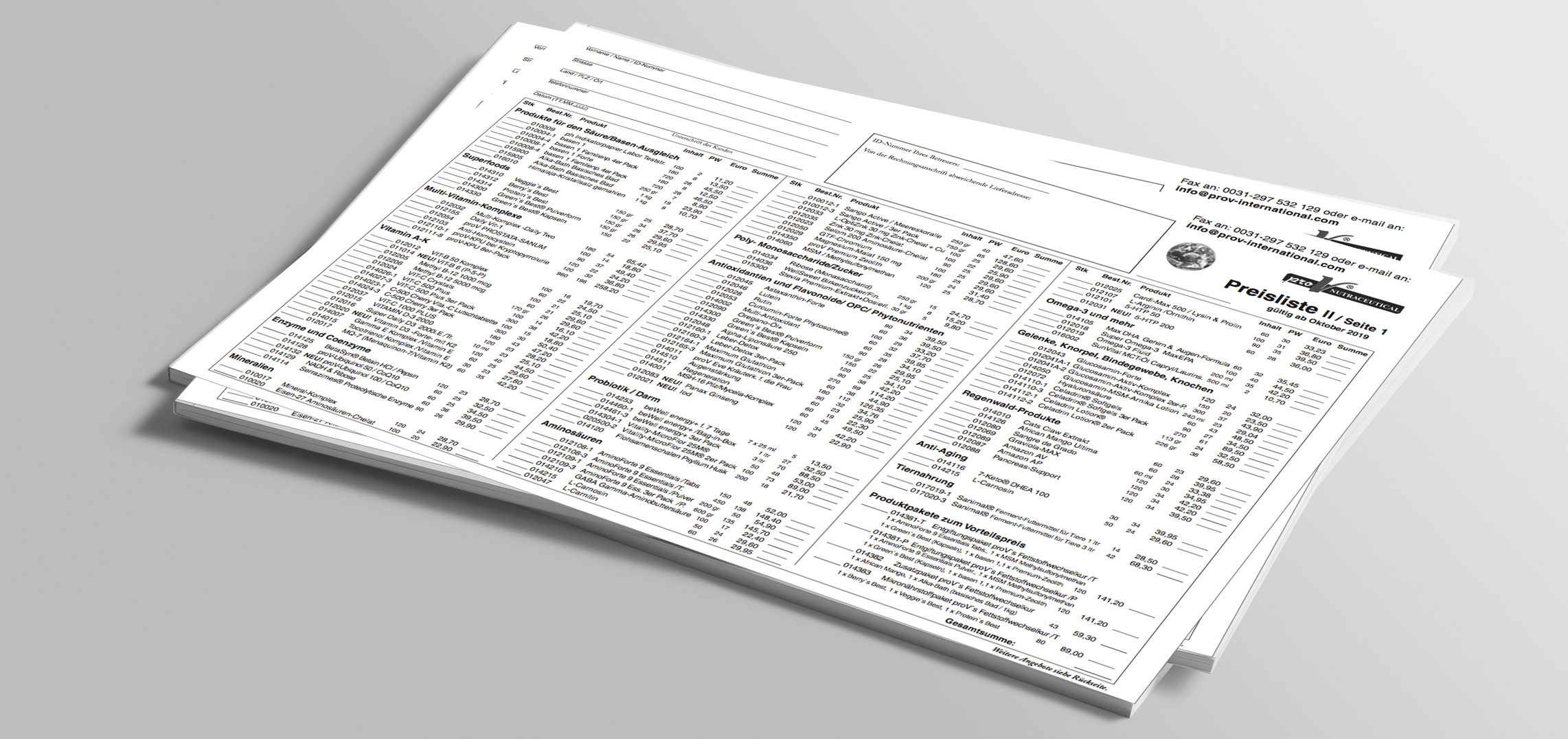 Die Seite wird demnächst geschlossen und alle Produkte wurden bereits entfernt bzw. inaktiv gestellt. Seit dem 01.01.2025 erfolgt die Abwicklung und Verrechnung der Provisionen im neuen System. Die neue Website wird voraussichtlich im Herbst online gehen, sodass Sie weiterhin bequem Bestellungen tätigen können. Bis dahin können Sie Ihre Bestellungen noch auf der alten Seite www.prov-international.com aufgeben.